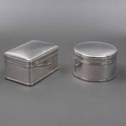 Paar 2e gehalte zilveren koektrommels, een rond en een rechthoekig model, met filet- en kabelranden, meester: Albertus Homan, Amsterdam, 1840, gewicht 782 gram, 7 × 14,2 × 10 cm en 7 × Ø 12,5 cm -bodem rechthoekige trommel is licht gebold-