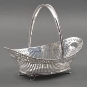 1e gehalte zilveren soezenmand met hengsel en spijlendecor, afgezet met parelrand, meester: D.J. Aubert en Zonen, Voorburg, 1972, gewicht 542 gram, 30 × 19 × 25 cm