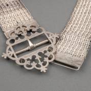 Zilveren gevlochten ceintuur, breedte 4,6 cm, gewicht 298 gram, lengte 75 cm