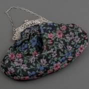 Gebloemde stoffen damestas aan 2e gehalte zilveren tasbeugel en ketting, 1917, brutogewicht 158 gram, 24 × 29 cm