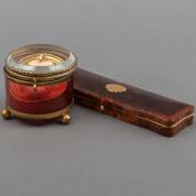Schildpad brillendoosje met gouden appliqué, en glazen damesremontoirhouder, brutogewicht 302 gram, 16,5 × 4,5 cm en Ø 7,5 cm