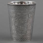 Oosterse 1e gehalte zilveren drinkbeker met geciseleerd decor, gewicht 96 gram, hoogte 9,5 cm