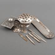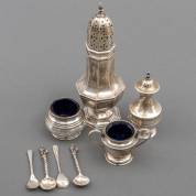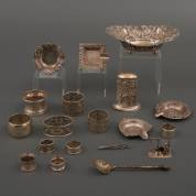Divers 1e gehalte tafelzilver, Engels, gewicht zonder zoutglaasjes 203 gram