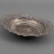 BWZG Djokja schaal, de opengewerkte rand met floraal decor, gewicht 503 gram, 7 × 23 × 31,5