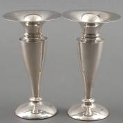 Paar 1e gehalte zilveren balustervormige vaasjes, op ronde voet, Sheffield, 1902, brutogewicht 290 gram, Ø 8 × 15 cm