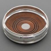 1e gehalte zilveren flessenbak met houten bodem, Londen, 1973, brutogewicht 136 gram, Ø14 cm