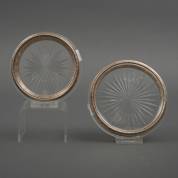 Twee glazen onderzetters met 2e gehalte zilveren monturen, Ø 11,5 cm en 10,5 × 8,5 cm