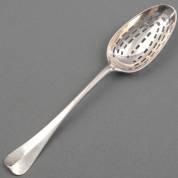 Zilveren natfruitlepel, enkel lof, achterzijde dubbel gekeurd met 'gekroonde boom', gewicht 54 gram, 21 cm