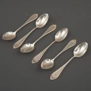 Zes 3e gehalte zilveren ijslepels, de stelen met gegraveerde 'G', gewicht 153 gram