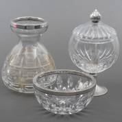 Divers kristal met 1e gehalte zilveren monturen: vaas, bonbonnière en schaaltje, afmeting vaas 17 × 12 cm