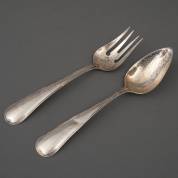 2e gehalte zilveren slacouvert, rondfilet, meester: J.M. van Kempen & Zonen, Voorschoten, 1885, gewicht 132 gram, 26 cm -steel lepel gedeukt-