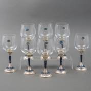 Acht kristallen wijnglazen, Bohemia, Tsjechië, de steel en voet met lapis lazuli en 1e gehalte zilver, de voeten gevuld met wit marmer, 20e eeuw, elk in houten presenteerdoos, glas 17 × Ø 6,2 cm