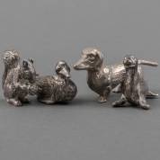 Vier zilveren miniaturen: eend, eekhoorn, teckel, en zeeleeuw, meester: Utrechtse Fabriek van Juwelen en Zilveren Penningen, Amsterdam, 1916-1921, gewicht 110 gram