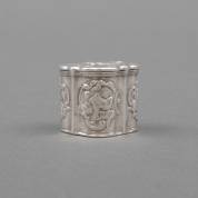 Zesdelige 2e gehalte zilveren kapset met geprofileerde rand, gekeurd met belastingkeur voor ingevoerde werken 1906-1953, brutogewicht 902 gram 28 × 1,5 cm