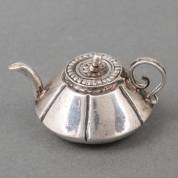 Zilveren miniatuur: ketel, meesterteken: buste, onbekende meester, Amsterdam, circa 1725, zie boek: Tall and small, van E. & E. Aardewerk, blz. 276, gewicht 22,6 gram, 3,5 × 5,5 × 3,8 cm -knopje staat scheef-