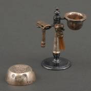 2e gehalte zilveren miniatuur: scheerset, Italië, gewicht 47 gram, standaard 6 cm