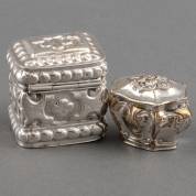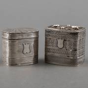 Twee 2e gehalte zilveren lodereindoosjes, rechthoekig model, meester: Carolus Henricus Cammans, Leeuwarden, 1875, gewicht 56 gram, rechthoekig model 4 × 3 × 4,5 cm
