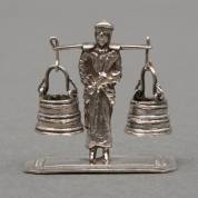 Zilveren miniatuur: melkdrager met juk, meester: onbekende meester WS, 18e eeuw, zie boek: Nederlandse miniaturen 17e en 18e eeuw van John Endlich, blz. 134, gewicht 22,8 gram, 4 × 4 × 2,4 cm