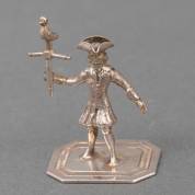 Zilveren miniatuur: valkenier, meester: Johannes Arnoldus van Geffen, Amsterdam, 1790, gewicht 14,0 gram, 4 × 2,8 × 2,2 cm