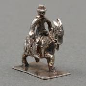 Zilveren miniatuur: bokkenrijder, vermoedelijk 17e eeuw, gemaakt door onbekende meester, gemerkt met scepter, zie boek: Nederlandse miniaturen 17e en 18e eeuw van John Endlich, blz. 133, gewicht 16,8 gram, 3,8 × 2,8 × 1,6 cm