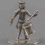 Zilveren miniatuur: tamboer, Amsterdam, gedeeltelijk keurteken 'B', mogelijk voor Jan Breda, 18e eeuw, gewicht 15 gram, 4 cm hoog