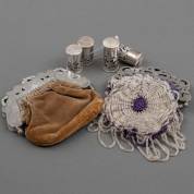 Twee portemonneetjes met 2e gehalte zilveren beugels, en twee 2e gehalte zilveren opengewerkte lipstickhouders, brutogewicht 230 gram