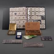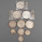 Nederlandse muntenverzameling, waaronder zilveren guldens, rijksdaalders, grote rijksdaalders, 10 gulden en 50 gulden, daarbij losse centen en stuivers