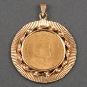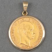 14kt gouden munthanger met gouden tientje: Wilhelmina, 1911, gewicht 11,8 gram, Ø 3,6 cm