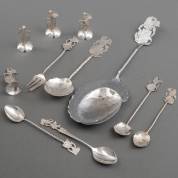 Divers 2e gehalte zilveren diengerei, alle met gegraveerde steel, diverse meesters en jaren, gewicht 195 gram, 20 cm
