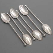 Zes 2e gehalte zilveren longdrinklepels met getorste steel, meester: Zilverfabriek Voorschoten, gewicht 100 gram