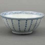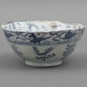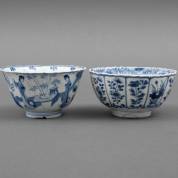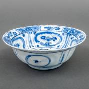 Chinees porseleinen kom met blauw-wit decor: 'Ode to the Red Cliff', circa 1640, herkomst: Hatcher Collection, Christie's Amsterdam 1984 -bakfoutje: scheurtje in rand, glazuur aangetast-, 7 × Ø 17 cm