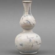 Chinees porseleinen knobbelvaas met blauw-wit decor: blaadjes, insect en vogel op een tak, circa 1640 -glazuur aangetast-, herkomst: Hatcher Collection, Christie's Amsterdam 1984, 22 × Ø 11 cm