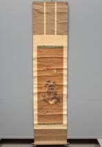 Japanse rolschildering: kraanvogels en schildpad bij rots met ondergaande zon, aquarel op papier, r.o. gesigneerd -gebruind, craquelé, defecten-, 98 × 33,5 cm