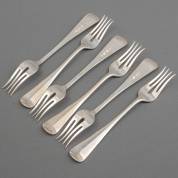 Zes 2e gehalte zilveren cocktailvorken, meester: J.M. van Kempen & Zonen, Voorschoten, 1914, gewicht 226 gram, 17 cm