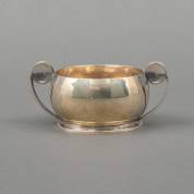 2e gehalte zilveren suikerpotje, glad bol model met twee greepjes, meester: Carl M. Cohr, Denemarken, hoogte 6 cm, gewicht 152 gram
