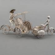 Twee BWZG miniaturen: riksjarijders, gewicht 140 gram, 10 cm hoog