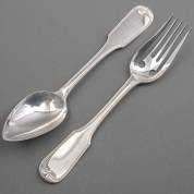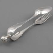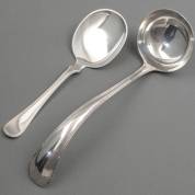 2e gehalte zilveren soepdienlepel, rondfilet, meester: Gerofabrieken, Zeist, 1924, en 2e gehalte zilveren pasteischep, rondfilet, meester: Firma Eversbag & Van Outvorst, Amsterdam, 1876, winkeliersmerk: Benten & Zonen, gewicht 349 gram, lengte soepdienlepel 30,5 cm