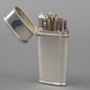 Zilveren reisnecessaire met diverse instrumenten, niet gekeurd, 18e eeuw -deukje-, 9,7 cm, brutogewicht 131 gram