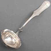 2e gehalte zilveren soepdienlepel met gecontourneerde bak, meester H.A. Schuss, 1849, gewicht 188 gram, lengte 31 cm