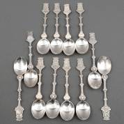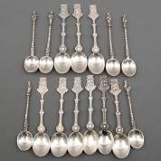 Twaalf 2e gehalte zilveren provincietheelepels: complete set van elf provincies en Nederland, gewicht 170 gram, 11,5 cm