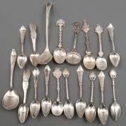 Divers klein zilver, diverse gehaltes, meeste theelepels, gewicht 220 gram, compotelepel 17 cm