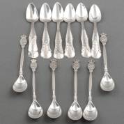Negen 2e gehalte zilveren provincietheelepels en zes aposteltheelepels, gewicht 165 gram, 11,5 cm