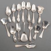 Verzameling van veertien 2e gehalte zilveren thee- en suikerschepjes, diverse meesters en jaren, gewicht 179 gram