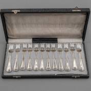 Twaalf 1e gehalte zilveren ijslepels, meester: D. van Outvorst Jr. en Zonen, Amsterdam, 1929, gewicht 315 gram, 12,5 cm