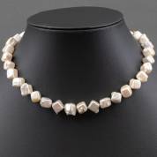 Parelcollier van gecultiveerde kubusvormige parels, aan kubusvormig 14kt gouden slot, gemerkt Gellner, in origineel foedraal, brutogewicht 75 gram, lengte 44 cm