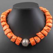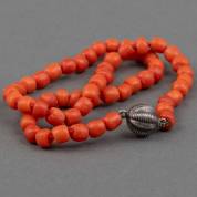 1e gehalte zilveren collier van koralen kralen, brutogewicht 360 gram, lengte 63 cm