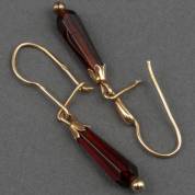 Paar 14kt gouden oorhangers met granaten hanger, brutogewicht 1,2 gram, 4 cm
