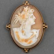 BWGG cameebroche gezet met damesportret en profil en veiligheidsketting, brutogewicht 8,8 gram, 5 × 4 cm