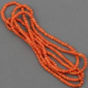 Snoer van kleine bloedkoraal kralen, lengte circa 120 cm