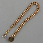 14kt gouden horlogeketting met boordknoopje, gewicht 9,0 gram, lengte 24 cm